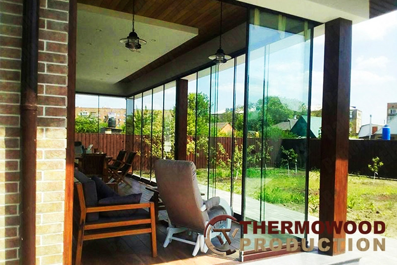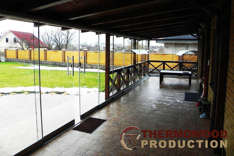 Важным преимуществом системы является то, что она нижнеопорная. есть. весь вес створок приходится на пол. Часто такая компоновка является неоспоримым преимуществом, поскольку для безопасного монтажа верхнеподвесных систем требуются мощные несущие конструкции, которые часто просто отсутствуют (особенно в беседках и верандах).
